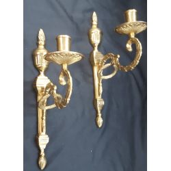 Pair of Solid Brass Ornate Candle Stick Sconces Made in Sweden #GA1004