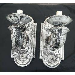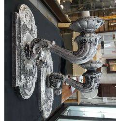 Pair of Very Large Ornate Aluminum Wall Sconces #GA725