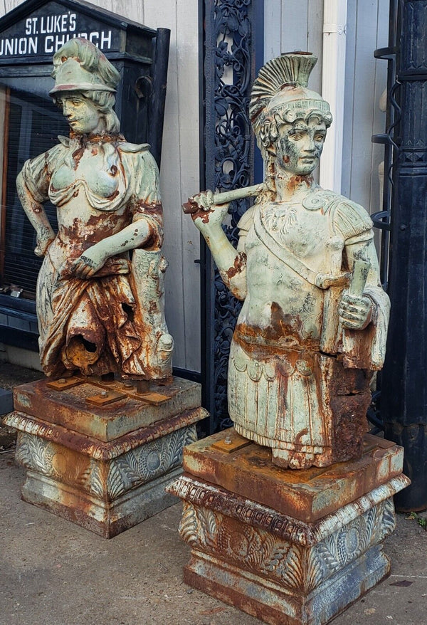 Cast Iron Custom Made Man & Woman Trojan Soldiers on Pedestals GS00747