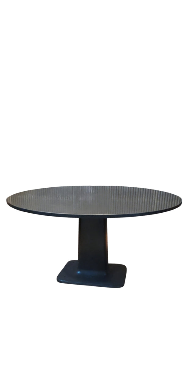 This listing is for a round black granite table with a cast iron machine base. It can be used either inside or outside your home. The table has a sleek black color and a classic round shape, making it a stylish addition to any home or garden furniture collection.