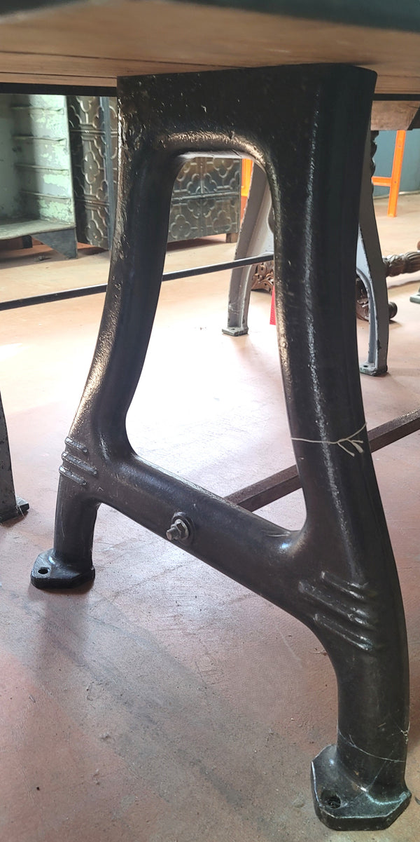 Reclaimed Bowling Alley Table w/ Industrial Cast Iron Base 86 1/2" x 30" GS00834