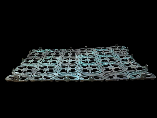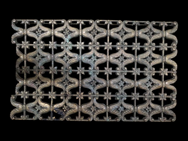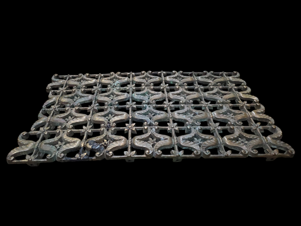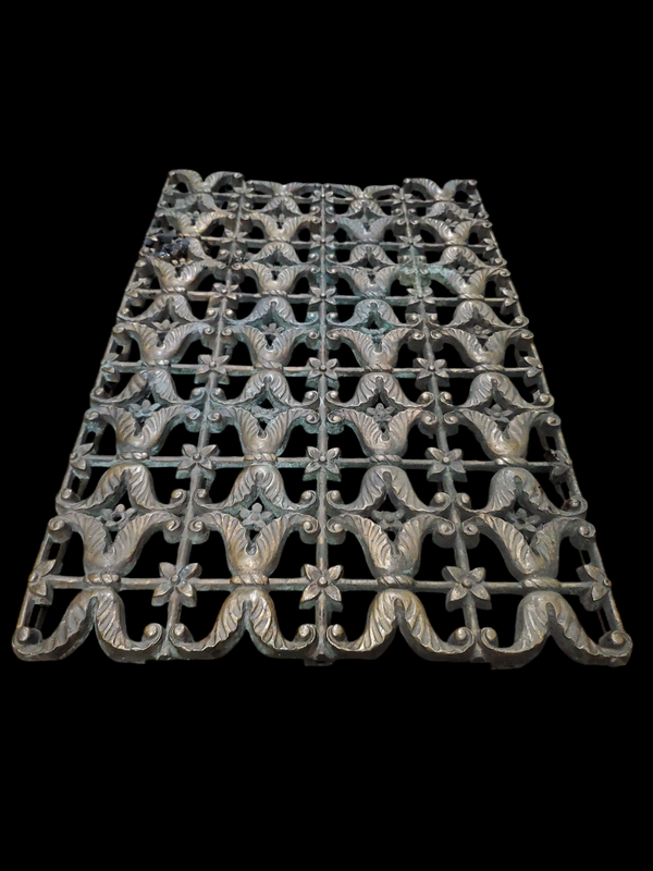 This decorative bronze vent/grate panel is a beautiful addition to any antique collection. It exudes a unique charm and history. The panel is made of high-quality bronze material, ensuring its durability and longevity.