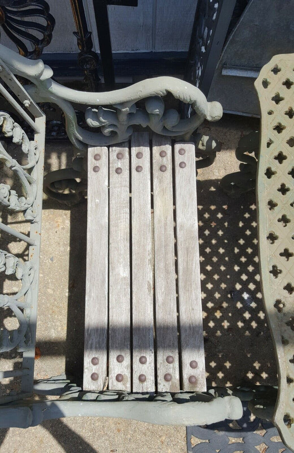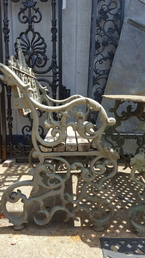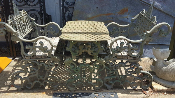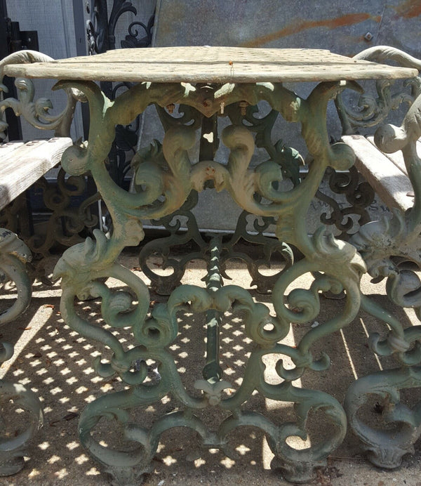 Rare 1800's Ornate Victorian Cast Iron Exterior Table w/ Benches GS00705