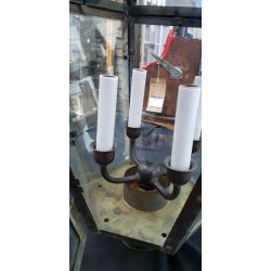 Restored Large Glass & Brass 4 Candelabra Lantern Post Light #GA1167